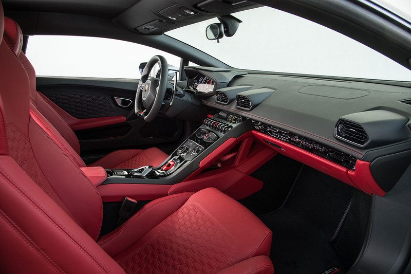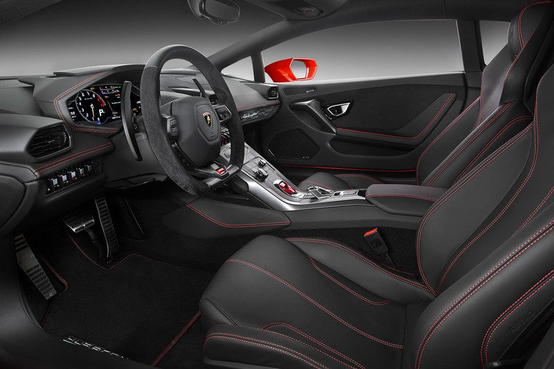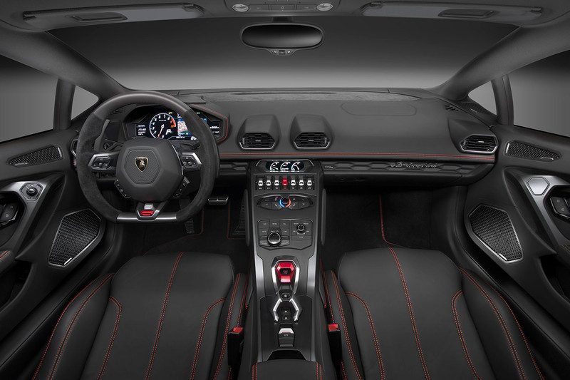 En el interior, la tracción trasera Huracán no se traduce en demasiados cambios, lo que significa que sigue siendo cómodo y funciones son fácilmente accesibles. En primer lugar, hay un montón de espacio de la cabina para el conductor y para que los pasajeros se sienten. Detrás del volante se controla todo, desde un panel de instrumentos digital TFT de 12.3 pulgadas que muestra la navegación y las funciones de entretenimiento. No hay pantalla correspondiente para el pasajero, pero bueno: no sueles subirte a un Lamborghini para distraerte con pantallitas. No es tan impresionante como la cabina virtual de ‘compañía hermana’ de Audi, pero hace bien su trabajo.