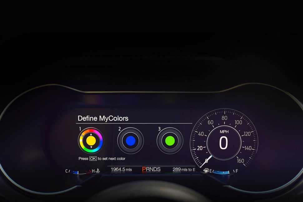 El Mustang es uno de los primeros “productos” de Ford ofrecidos con un grupo de instrumentos digitales. La unidad opcional LCD de 12 pulgadas ofrece tres vistas separadas completamente configurables. Se puede programar para mostrar información diferente, dependiente de los modos de conducción Normal, Sport y Track . Ford señala que incluso el sonido de escape del Mustang puede ser personalizado a través de un sistema de activación de válvulas.