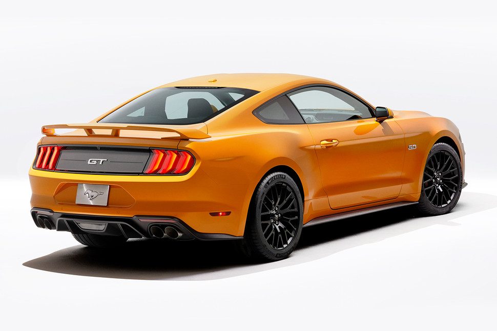 Esta actualización de mitad de ciclo viene con una nueva plancha metálica desde el pilar A hacia delante. Los faros son más pequeños que en el modelo actual, y cada uno de ellos recibe tres tiras cortas de luces LED diurnas. Es una interpretación moderna de una de las señas características del Mustang. Un parachoques rediseñado, un cofre bajo y señales de giro horizontal son otras novedades.