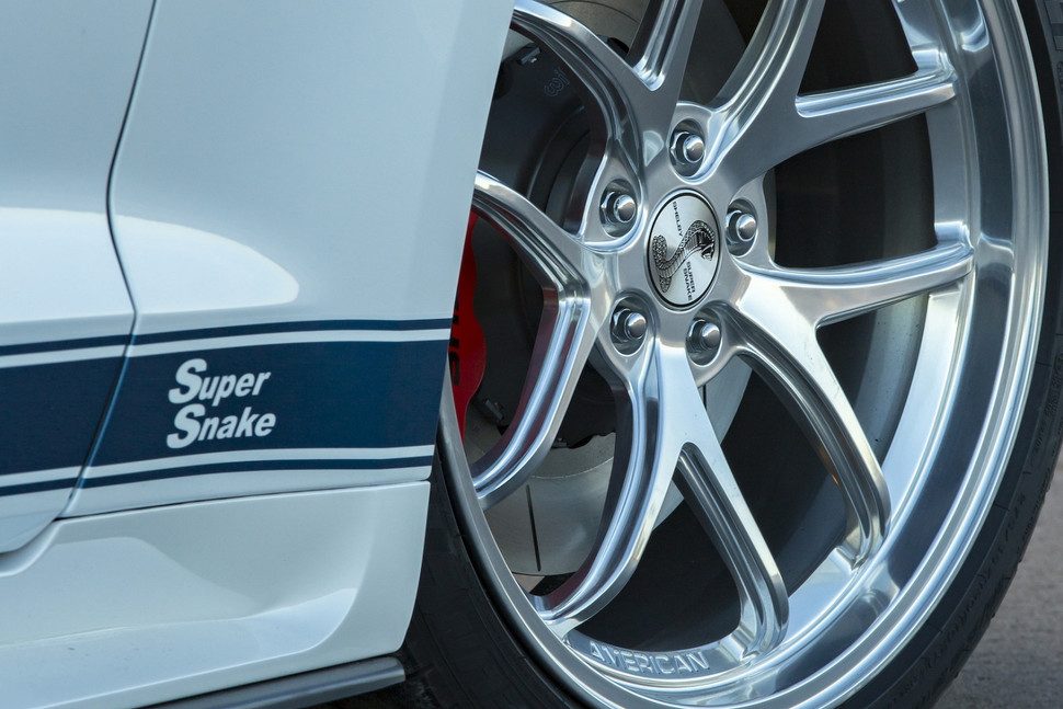 Si eso no te parece suficiente potencia, Shelby ofrece un paquete de actualización opcional que viene con un sobrealimentador más grande, el cual aumenta la producción del ocho cilindros hasta los 750 caballos de fuerza. También incluye un paquete de enfriamiento extremo, y un eje de transmisión de una sola pieza. Correctamente equipado, este Super Snake conmemorativo alcanza las 60 mph de una parada en 3.5 segundos, alcanzando el cuarto de milla en 10.9 segundos.