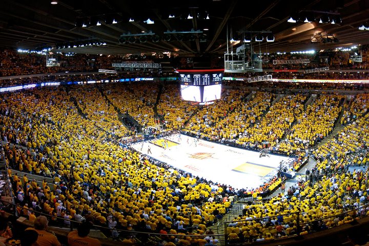 La sede actual de los Warriors, Oracle Arena, reside en Oakland, California, a menos de una hora de la capital tecnológica Silicon Valley. Draymond Green dice que la proximidad le da a los jugadores acceso temprano a la tecnología emergente, como por ejemplo la realidad virtual.
