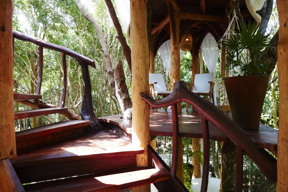 Vale la pena señalar que mientras que muchas de las casas, cabañas y habitaciones privadas de Papaya se encuentran a tiro de piedra de la playa, la casa-árbol fue construido en el exuberante bosque cercano de Tulum, lo que significa que llegar a la playa puede tomar algo de tiempo.