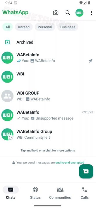 Otra cosa que esperar son los filtros en la lista de chats. Parece que los usuarios tendrán la opción de filtrar las conversaciones a través de todas las opciones no leídas, personales y comerciales. Al igual que la barra inferior, esta característica se descubrió en una versión anterior de la aplicación, pero esta apareció en la versión beta de WhatsApp para Android 2.23.14.17.