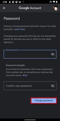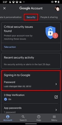 Puedes y debes cambiar con frecuencia la contraseña de tu Cuenta de Google, ya que esto te ayudará a evitar el hackeo y las brechas de seguridad. Revisa con regularidad para ver cuánto tiempo haz tenido tu contraseña y considera cambiarla si ya tiene varios meses. Cambiarla con cierta frecuencia mantiene a los hackers alejados de tus cuentas y te da tranquilidad.