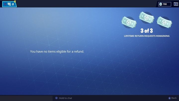 Tampoco podrás reembolsar las compras hechas en V-Bucks -la moneda virtual que se utiliza para comprar artículos- y si bien puedes reembolsar la compra de skis en V-Bucks, no podrás convertir esta moneda virtual en real. Por último, el artículo que desees reembolsar debe haber sido comprado en los últimos 30 días.