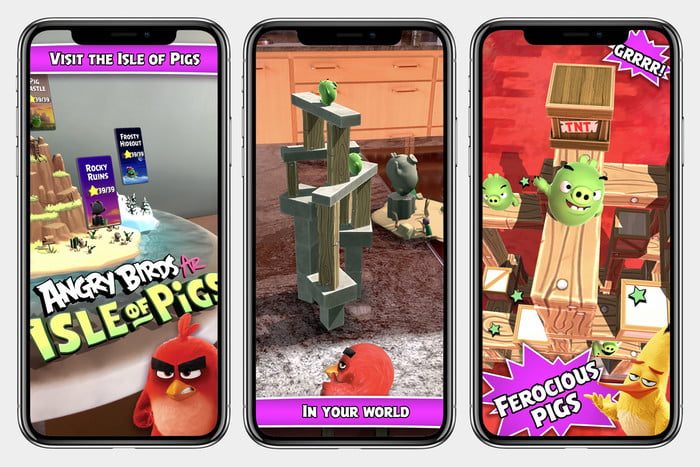 A partir del 19 de marzo, la App Store de Apple tomará pedidos anticipados de Angry Birds AR: Isle of Pigs con fecha de lanzamiento en algún momento de la primavera de 2019. El juego será gratuito y podrá lanzarse en una fecha posterior para otros sistemas que tengan soporte para realidad aumentada.