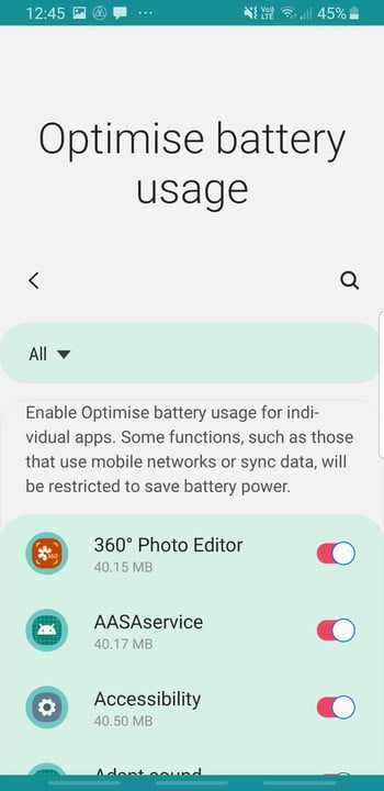 - Si tu problema es con una aplicación específica como Spotify, puedes desactivar la optimización solo para esa aplicación. Para ello, ve a Ajustes>Aplicaciones, pulsa los tres puntos de la parte superior derecha y selecciona Acceso especial>Optimizar el uso de la batería. Asegúrate de que el cuadro desplegable de la parte superior dice Todos, luego desplázate hacia abajo y desmarca Spotify o cualquier aplicación que estés usando.