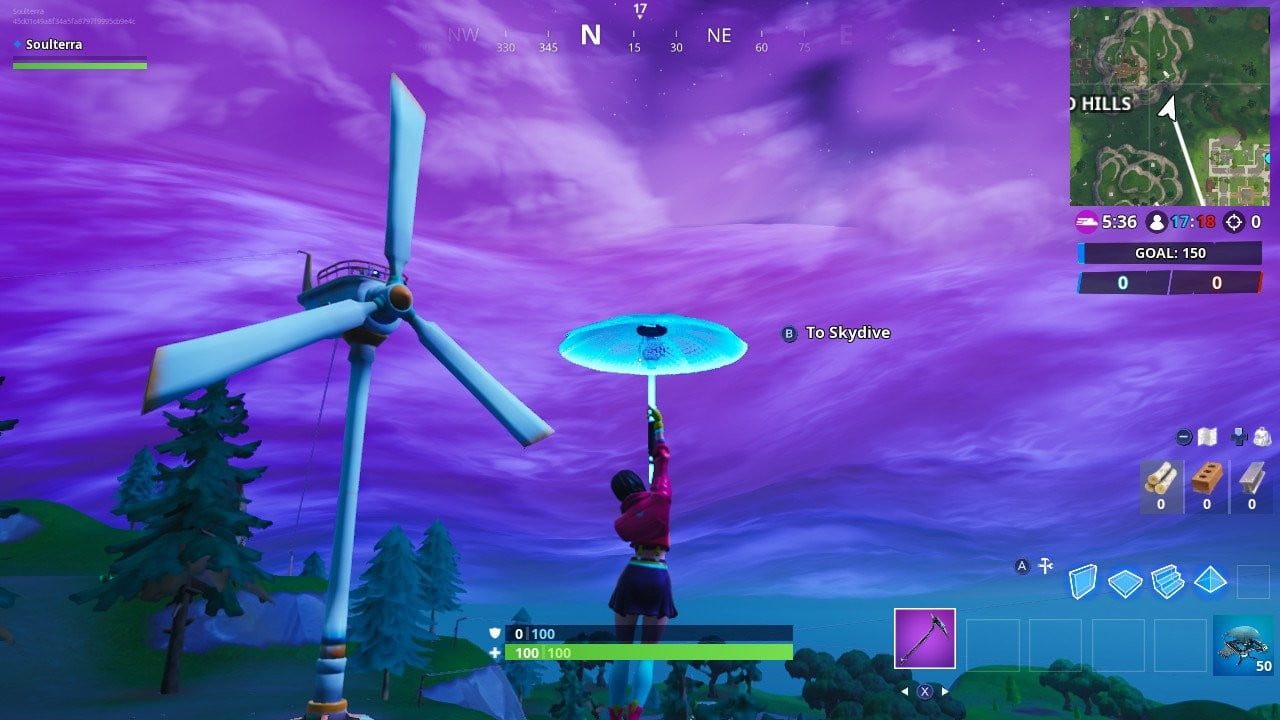 Las cinco que recomendamos visitar son las cinco que forman la silueta de una estrella alrededor de Pleasant Park. Hay dos turbinas que están lejos hacia el sur en comparación al resto, y recomendamos que las ignores para que no te desvíes tanto del camino. Las que debes de hacer desde el comienzo es buscar aterrizar en Pleasant Park o una de las cinco turbinas para comenzar el desafío.