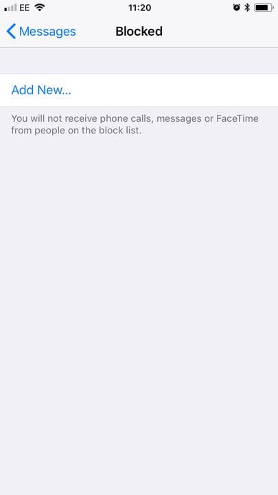 Otra manera es ir a Configuración> Mensajes> Bloqueados y seleccionar Agregar nuevo para añadir otro contacto. Con cualquiera de los dos métodos, no solo bloquearás los mensajes, también sus llamadas telefónicas y llamadas en FaceTime. Puede parecer algo radical, sí, pero te ahorra el tener que recurrir a aplicaciones y a la configuración de iPhone y FaceTime para bloquear a la misma persona.