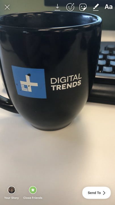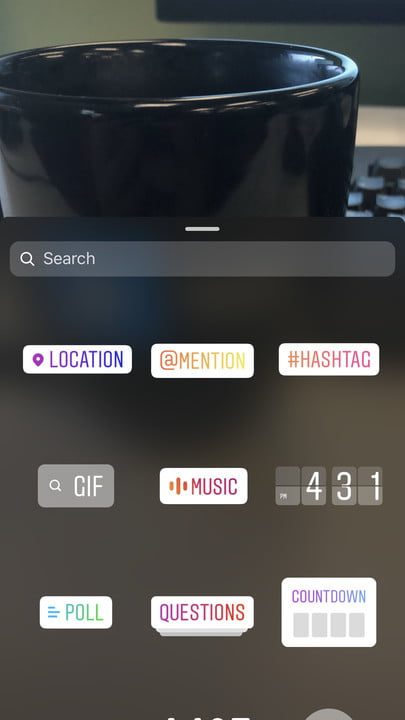 Aquí, puede buscar etiquetas de tendencias, o también buscar etiquetas específicas utilizando palabras clave. Una vez que hayas encontrado uno que te gustaría agregar, tócalo. Puedes pellizcar con dos dedos para hacerlos más grandes o más pequeños, o usar un dedo para moverlos alrededor de la imagen. Agrega lo que desees, luego toca en Tu historia (o Tus historias, si tienes varias cuentas) para publicarla.