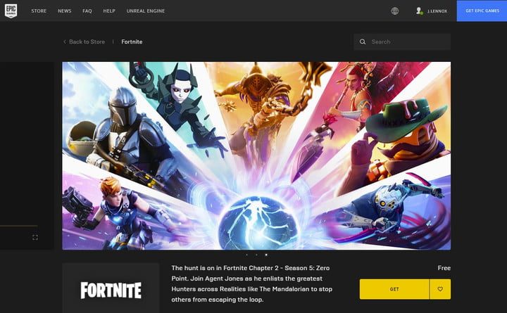 Con el cliente instalado, abre la Epic Games Store e inicia sesión con la cuenta que acabas de crear. Desde la pantalla de inicio navega hacia la pestaña de la Store, ubicada del lado izquierdo. Esto te dará acceso a una barra de búsqueda. Escribe “Fortnite” para encontrar el juego y comenzar con el proceso de instalación. Si esta se detiene por alguna razón (una mala conexión, quizá) puedes volver al menú y volver a intentarlo.