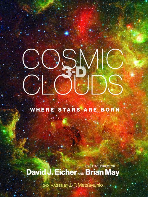 En esa línea científica, uno de los últimos trabajos de Brian May es Cosmic Clouds 3-D: Where Stars are born donde oficia como director creativo de un libro que muestra cientos de imágenes tridimensionales de nubes cósmicas de alta resolución, donde se cuentan los ciclos de vida de las estrellas y las nubes nebulares, dónde nacen y cómo mueren.