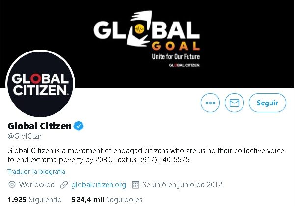 Global Citizen se define como un movimiento de ciudadanos comprometidos que utilizan su voz colectiva para terminar con la pobreza extrema en el año 2030. La organización transmite información sobre causas sistémicas de la pobreza extrema, invita a tomar medidas sobre esos temas y ganar recompensas por sus acciones.