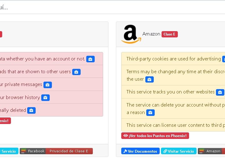 - Clasificación E: los términos de servicio plantean preocupaciones muy serias.