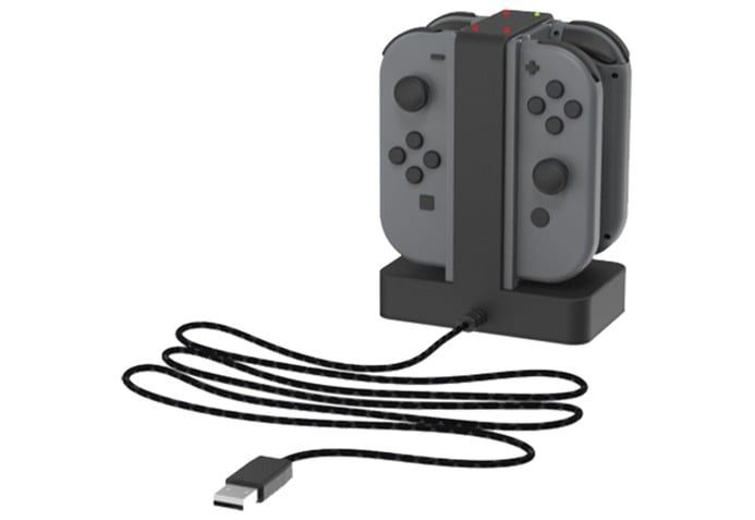 La base de carga oficial de Joy-Con de Nintendo es obligada para los fans que aman sus Joy-Cons. Los controles pequeños, capaces de manejar el movimiento, son esenciales para juegos como Ring Fit Adventure donde es necesario moverse y agitar cosas. Esta base se conecta directamente a la Switch vía USB, lo que significa que no necesita un enchufe y puede cargar hasta cuatro Joy-Cons al mismo tiempo. Aunque podría no ser el artículo más llamativo o divertido en la lista, es un accesorio obligatorio para todo jugador.