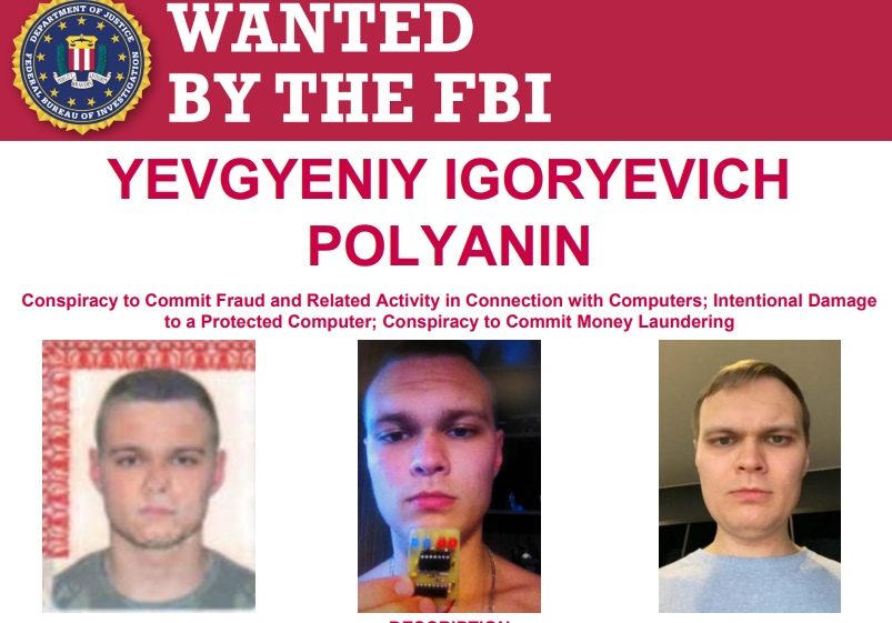 Yevgyeniy Igoryevich Polyanin por su presunta participación en ataques informático y actividades de lavado de dinero. Según el FBI, mediante el uso de los ransomwares Sodinokibi y REvil, Polyanin tomó el control de computadoras y cifró archivos, y solo los liberaba después de recibir el pago de un rescate. Quienes no entregaron el monto exigido, vieron cómo sus datos eran publicados en internet o eran vendidos a terceros. Se cree que Polyanin reside en Barnaul, Rusia, es uno de los muchos afiliados de Sodinokibi / REvil.