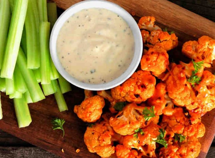 Corta la coliflor en trozos del tamaño de un bocado y mezcla con aceite de oliva. Agrega la coliflor a la canasta de la freidora y fríe a 370 ° F durante 8 minutos. Mezcla los otros ingredientes en un recipiente pequeño. Cuando la coliflor termine de cocinarse, mézclala con la salsa. Coloca la coliflor otra vez en la freidora y cocina por otros 3 minutos.