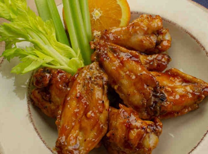Calienta el aceite en una cacerola, añade el jengibre, el ajo, las cebollas verdes y el pimiento rojo. Incorpora la salsa de naranja hasta que hierva y revuelva de forma constante. Mezcla 1 cucharada de maicena y ¼ de taza de agua en un tazón. Añade el pollo a la cacerola y la mezcla de maicena. Revuelve hasta que el pollo esté 100 por ciento cubierto.
