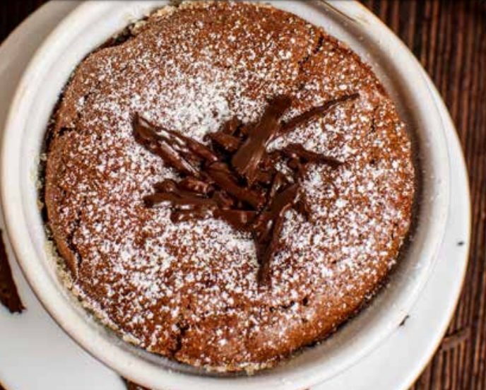En un recipiente aparte, bate las claras de huevo hasta que estén blandas. Agrégalas a la mezcla de chocolate hasta que estén completamente combinadas. Llena los moldes, dejando libre la mitad. Coloca los moldes en el centro de la bandeja y cocina durante 14 minutos  a 330° F. Cuando estén listos, espolvorea azúcar glass y sirve inmediatamente.
