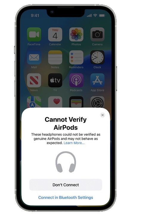 «Si recibes una alerta de «No se pueden verificar los AirPods»cuando intentas conectar tus AirPods con tu iPhone, iPad o iPod touch, verifica que tus AirPods sean genuinos. Puedes optar por no conectar tus AirPods no verificados o conectarlos en la configuración de Bluetooth. Si conectas tus AirPods no verificados, es posible que no funcionen como se esperaba», sostiene la marca.