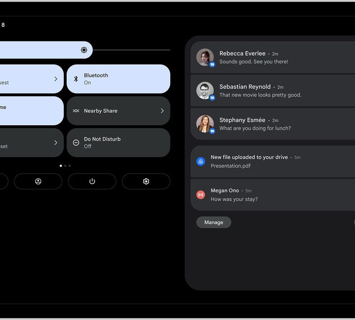 “Con 12L optimizamos la visualización de las pantallas de inicio, bloqueo, notificaciones, configuración del dispositivo, ajustes y otras”, enumeró Andrei Popescu, vicepresidente de Ingeniería de Android.