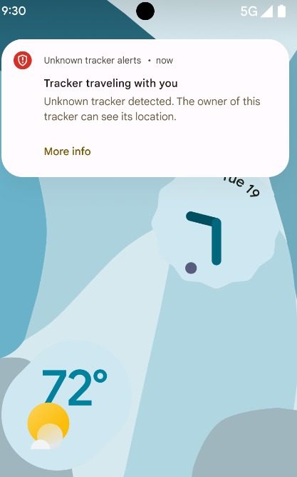 Google ha anunciado en su página de soporte que ya está disponible la notificación de rastreo de AirTag. Si tienes encima o cerca durante cierto periodo de tiempo un AirTag, recibirás una notificación como esta: