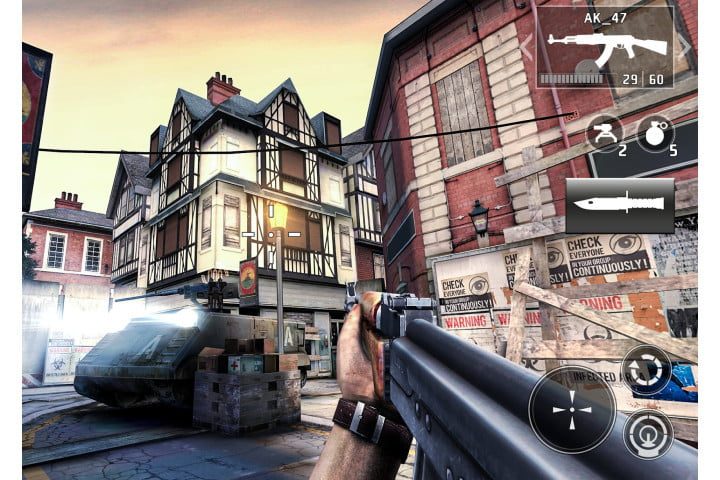Dead Trigger 2 se promueve como un juego de disparos de zombies en primera persona de acción incesante, y con más de 110 millones de descargas, es uno de los títulos de disparos de zombies más populares en la Play Store. Si aún no lo has probado, no hay momento como el presente. Ve tras hordas de muertos vivientes en 10 regiones y a través de 33 campos de batalla diferentes, utilizando más de 70 tipos de armas para acabar con ellos, desde rifles, escopetas y lanzacohetes hasta machetes, sierras eléctricas y llaves de tuercas. Si quieres, hasta les puedes lanzar una gallina letal. Sus avanzados gráficos, misiones interesantes, torneos semanales y la capacidad de crear un escondite personal y planear tu estrategia garantizan que Dead Trigger 2 te brindará horas y horas de entretenimiento. Puedes jugar con los controles táctiles o con el control virtual.