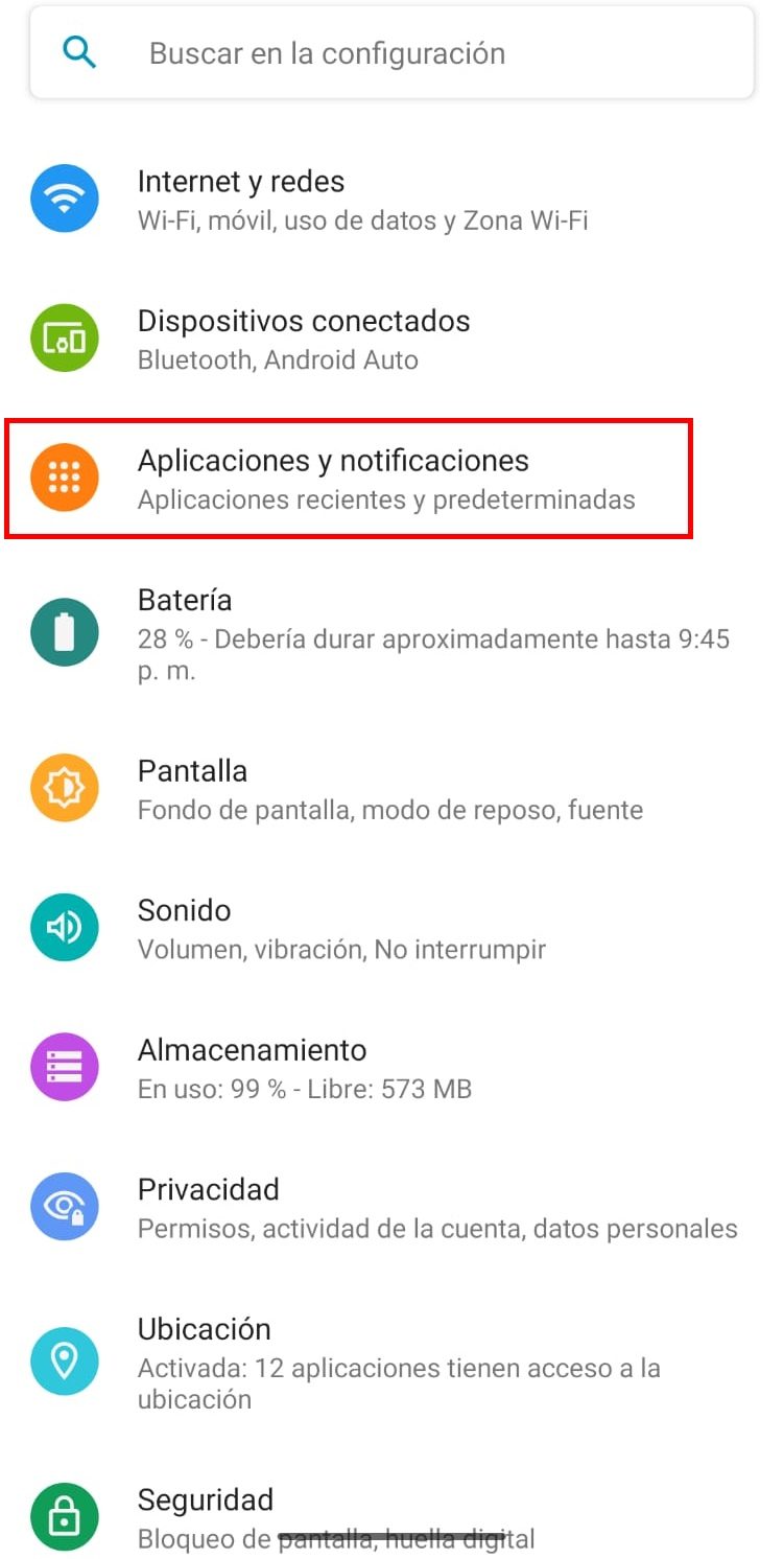 - 1. Abre la app Configuración y dirígete a Aplicaciones y notificaciones (o Aplicaciones)