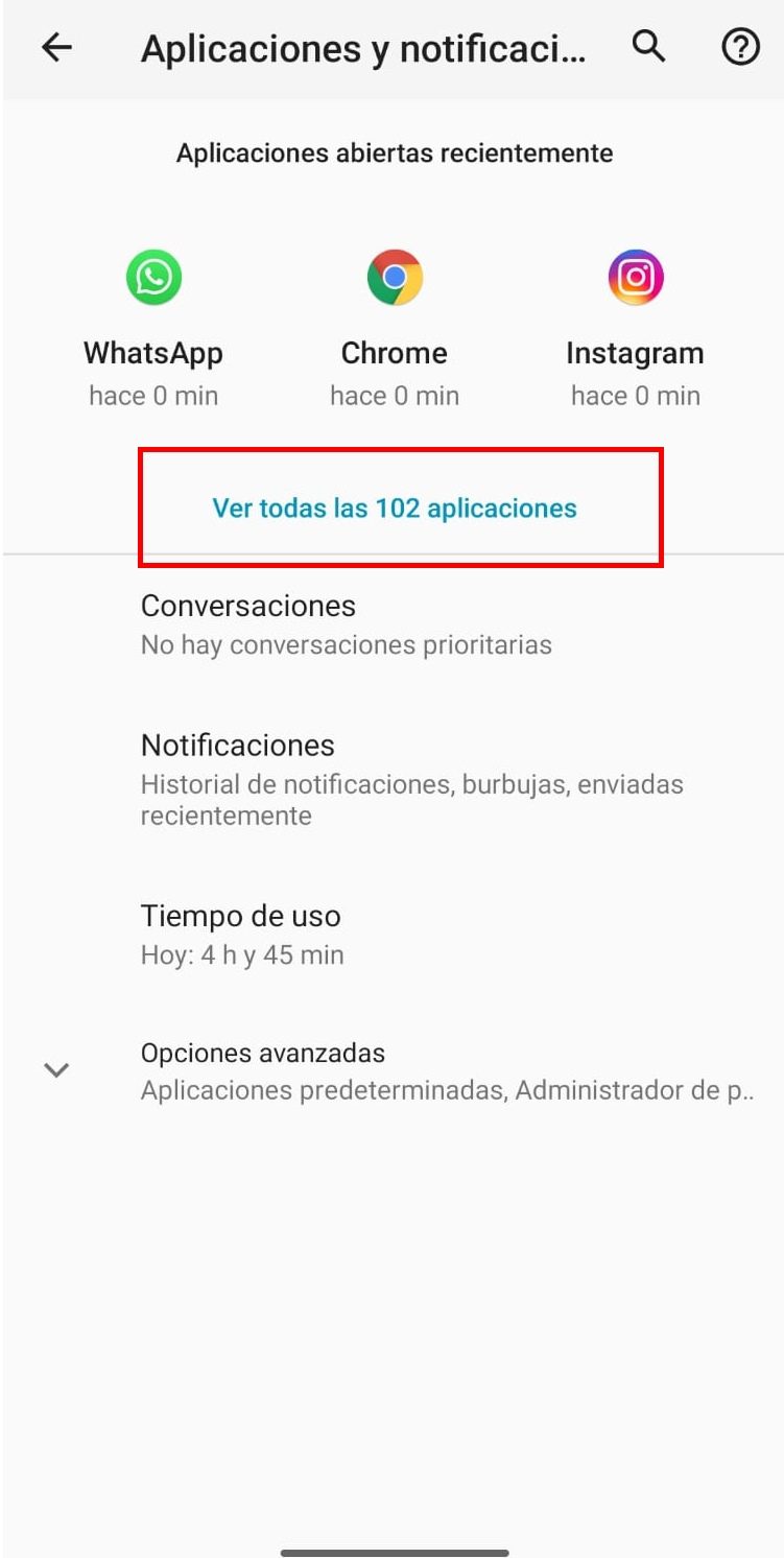 - Elige la opción Aplicaciones o Aplicaciones y notificaciones.