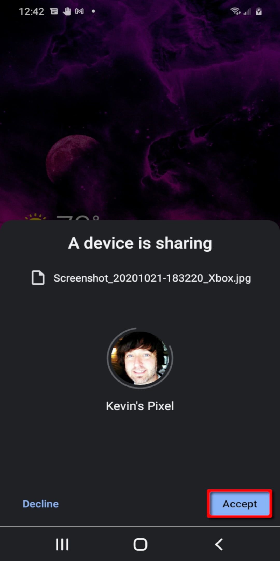 Paso 5: en el dispositivo receptor, toca Aceptar o Rechazar.