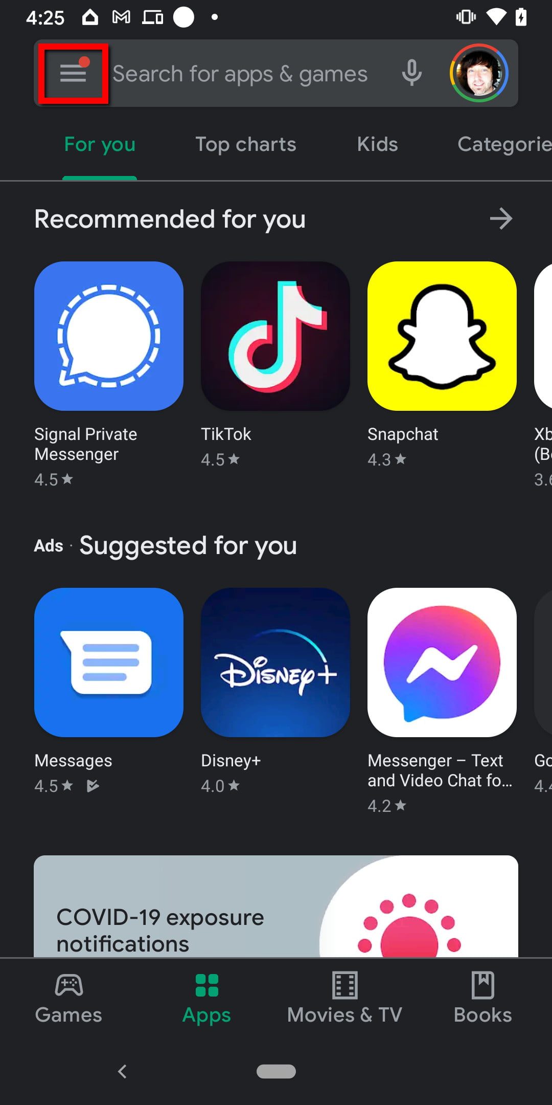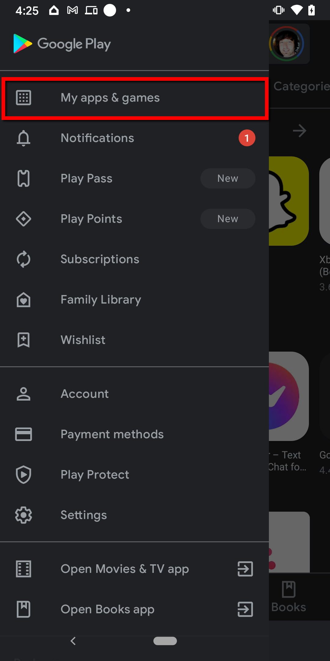 Paso 3: toca Mis apps y juegos.