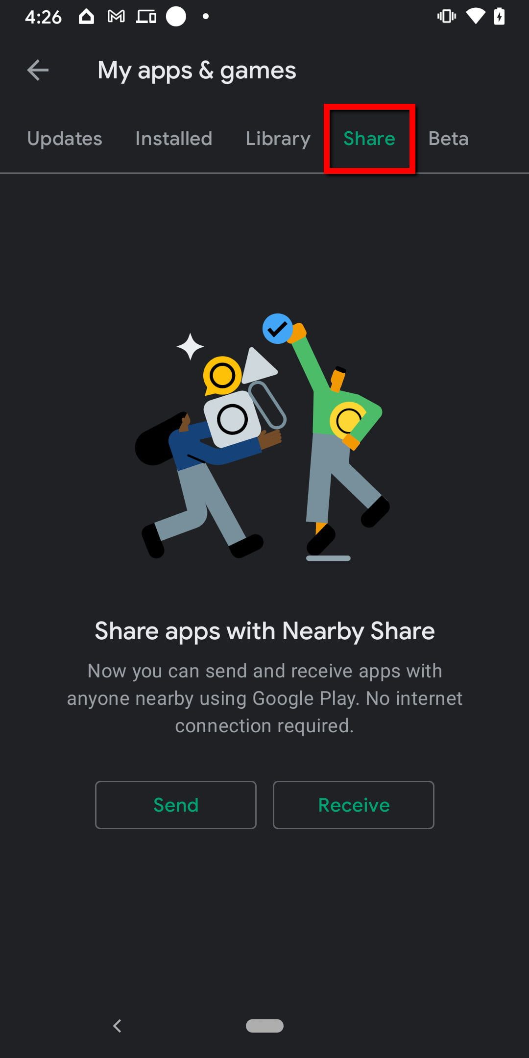 Para enviar y recibir aplicaciones a través de Nearby Share, sigue estos pasos.