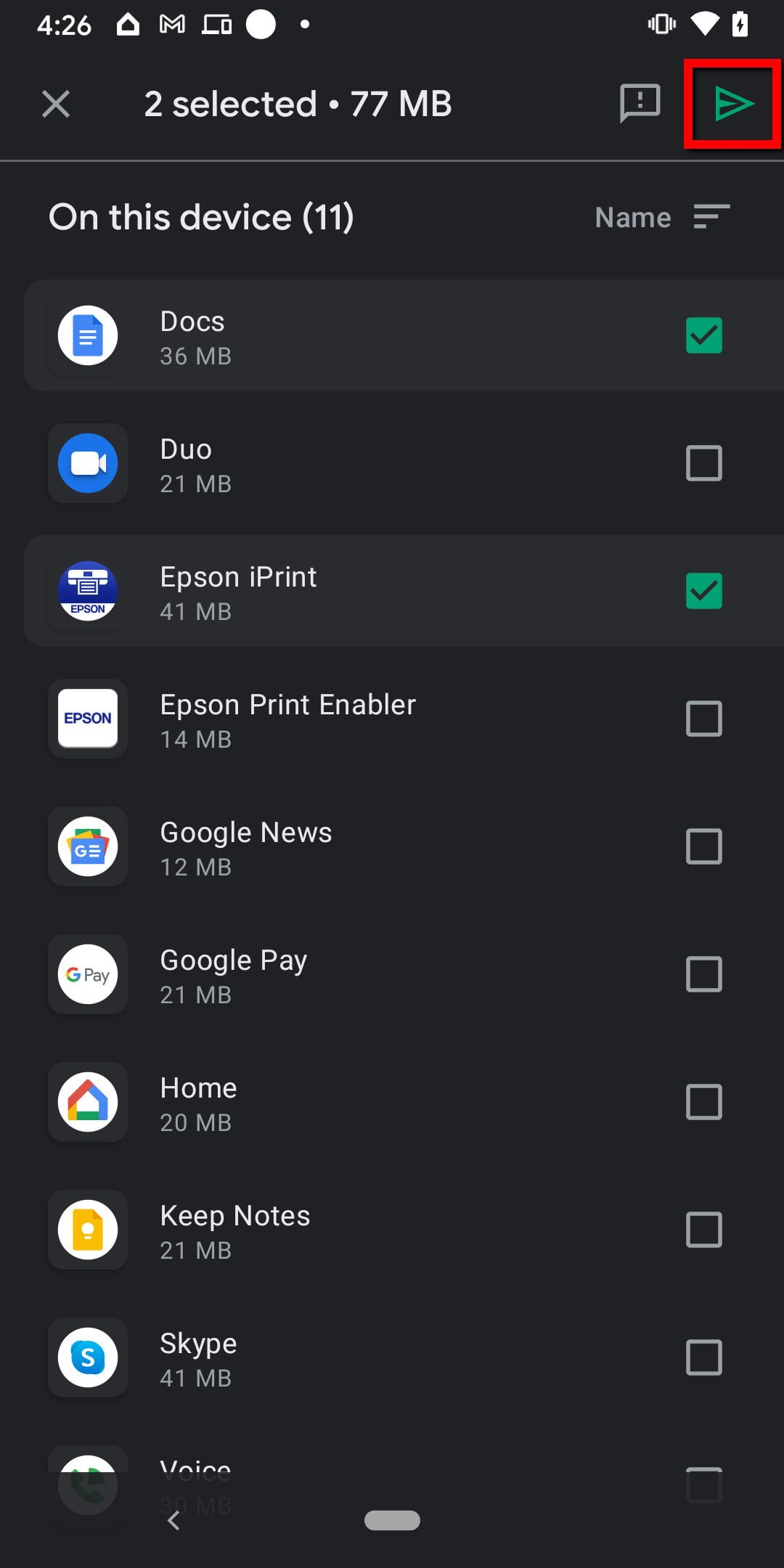 Paso 7: toca la casilla junto a la aplicación que quieres compartir.