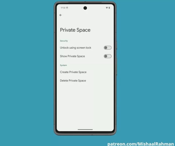Mishaal especula que esta nueva función te permitirá ocultar aplicaciones en tu teléfono a otras personas. Desde la configuración, podemos ver que los usuarios tendrán la opción de desbloquear la función de espacio privado con su bloqueo de pantalla.
