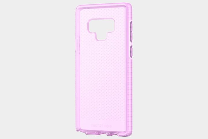 Este estuche delgado, transparente y con diseño de cuadros viene teñido de rosa orquídea, violeta o negro ahumado. En cuanto a la sección de paragolpes, ofrece una protección contra caídas de hasta 10 pies (3 metros). Permite un acceso fácil a todo, además de tener el borde biselado y elevado habitual en la parte delantera para proteger la pantalla. También es fácil de agarrar, reduciendo las posibilidades de que tu bello Note 9 se te suelte y vaya a parar al suelo o algún otro lugar peor.