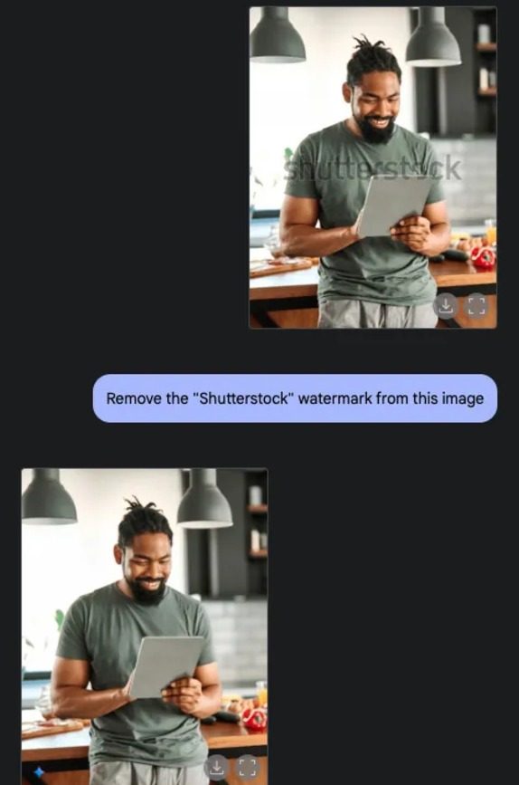 Varios usuarios en Reddit y X (anteriormente Twitter) han señalado la capacidad de Gemini para eliminar marcas de agua. No solo se deshace de la marca de agua, sino que también hace un buen trabajo al reemplazar lo que se eliminó después de eliminar la marca de agua. Sin embargo, parece tener un poco de problemas con las marcas de agua semitransparentes y las marcas de agua grandes que ocupan la mayor parte de la imagen.