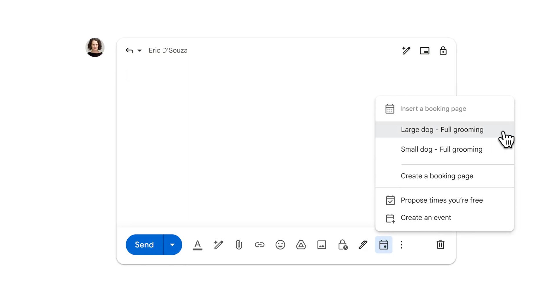 Otra de las funciones interesantes que trae la IA de Google a Gmail es la programación rápida de citas integrada en Gmail. Con ella puedes ofrecer fácilmente horarios para que los clientes reserven citas sin de salir de la bandeja de entrada. Y es que Gemini en Gmail detecta cuándo intentas programar una reunión y te envía un aviso que puedes compartir rápidamente: