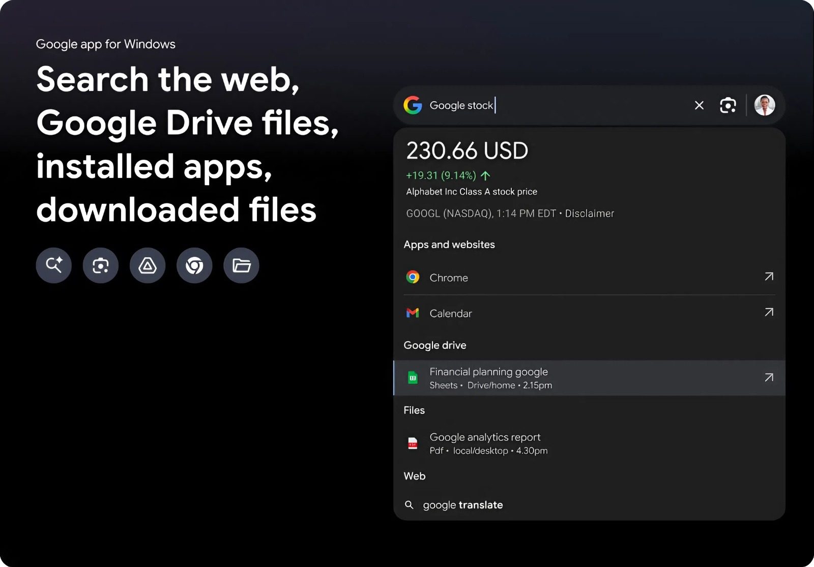 Ahora puedes buscar sin cambiar de ventana ni interrumpir tu flujo. Ya sea que esté escribiendo en un documento o en medio de un juego, simplemente presione Alt + Espacio para buscar instantáneamente información de los archivos de su computadora, las aplicaciones instaladas, los archivos de Google Drive y, por supuesto, la web.