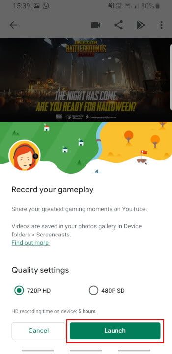 Paso 2: cuando selecciones un juego por primera vez, visitarás la ventana de detalles del juego. En esta ventana, verás un icono de la cámara grabadora. Selecciona este ícono, luego Siguiente y luego elige la calidad de tu video. Cuando consideres que todo se ve bien, selecciona Iniciar para comenzar a jugar.