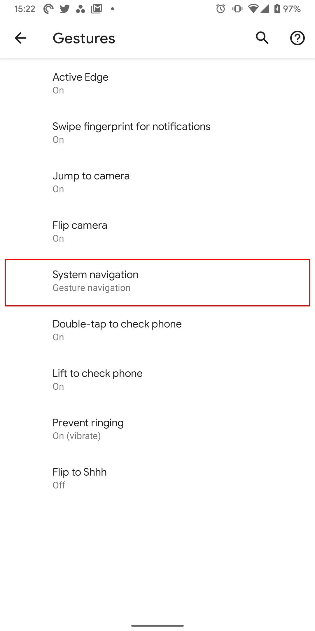 - En la parte superior de la lista se encuentra la navegación por gestos, el nuevo sistema de Android 10. Toca esta opción para activarla. Para desactivarla, simplemente selecciona otra de las opciones del mismo menú.