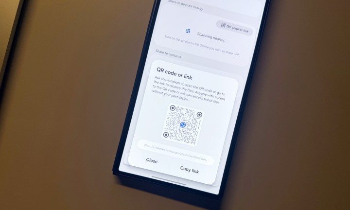 One UI hace que el proceso de compartir y recibir archivos sea mucho más fácil, gracias a un sistema de intercambio rápido renovado. La interfaz de usuario ahora tiene grandes botones para compartir y recibir en la parte inferior de la pantalla, y una opción separada para generar instantáneamente un código QR o un enlace para compartir los archivos.