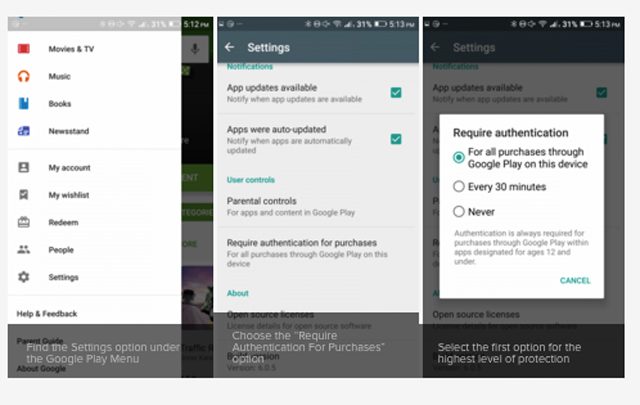 Aunque no actives esta opción, Google Play siempre solicitará la contraseña de tu cuenta en aplicaciones con una calificación de 12 o menos. De esta manera, hará lo mismo para cada compra que realices.