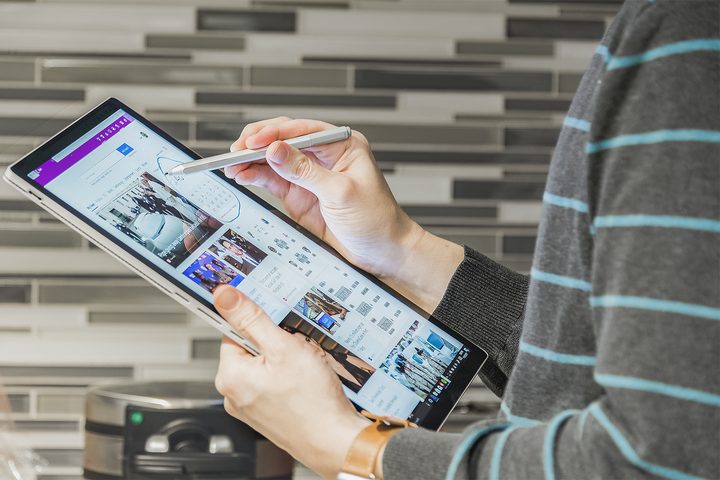 Sin embargo, puedes disfrutar del tamaño cuando sacas el bolígrafo. La pantalla ofrece un gran espacio para escribir y además es lo suficientemente grande como para actuar como un Surface Studio en miniatura cuando la tableta está sobre una mesa.