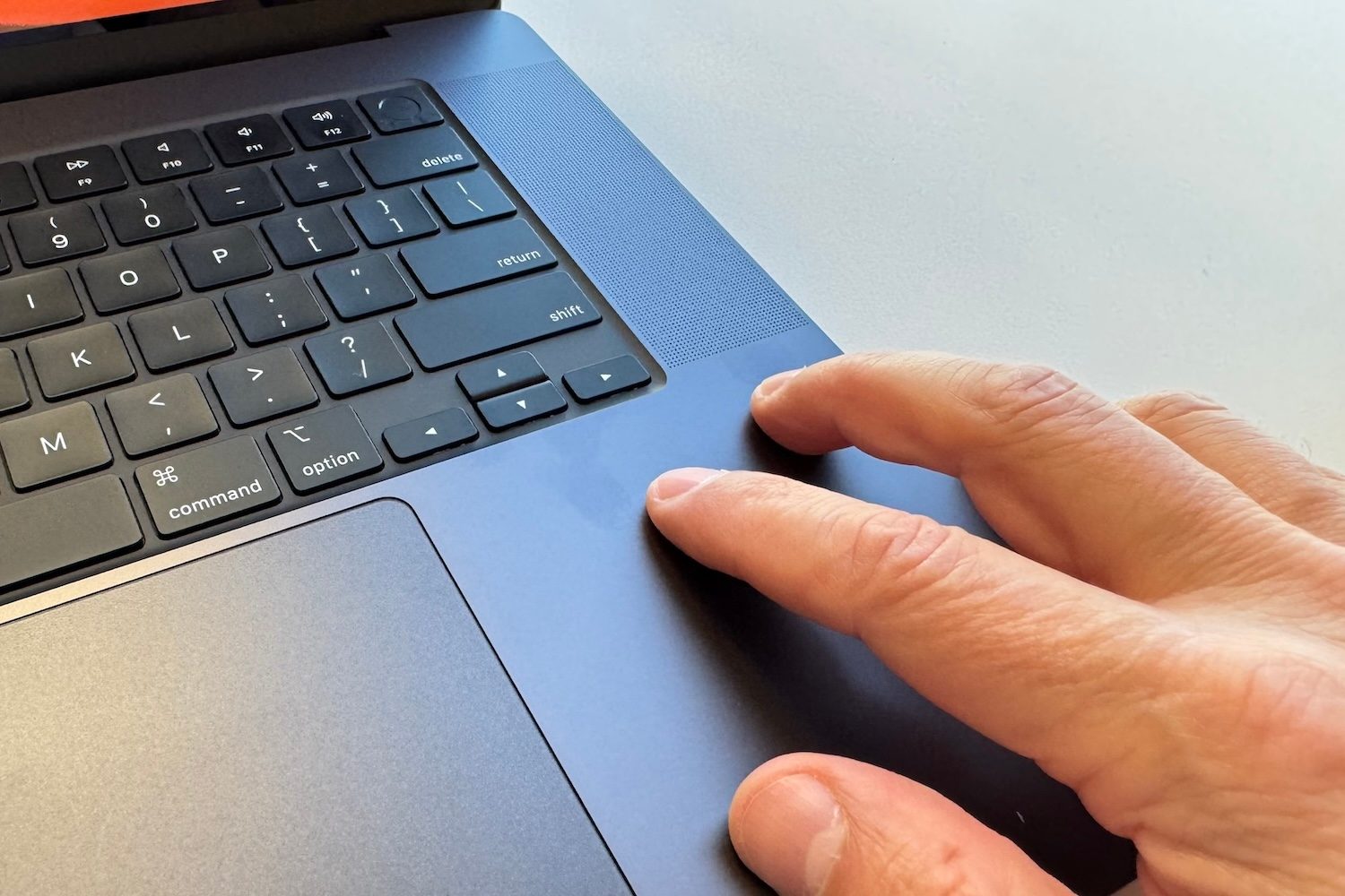 El Magic Keyboard viene con una fila de teclas de función de altura completa y Touch ID, nuestra forma favorita de desbloquear su Mac, al menos, hasta que Apple se decida a poner el FaceID también en sus laptops, al menos, sus modelos Pro. Escribir en esta computadora es muy cómodo, y buena parte de esta revisión la he hecho en el mismo MacBook Pro 16.