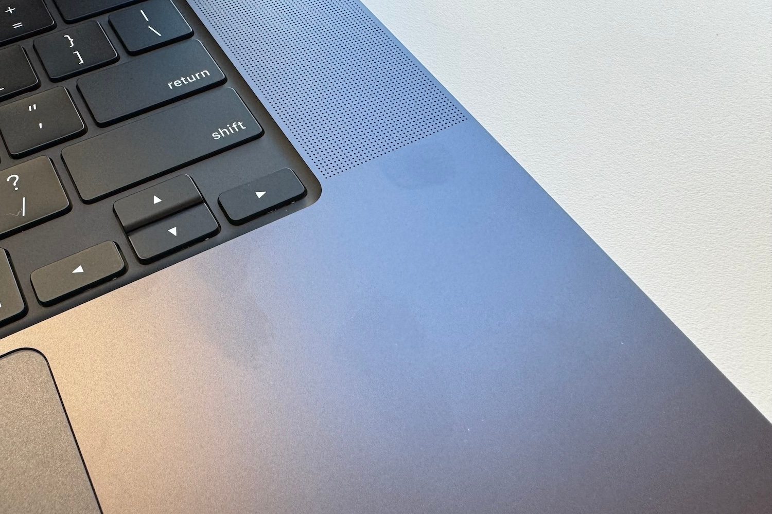 El color Space Black es una auténtica belleza, y es una de las cosas que agradeceremos a Apple por mucho tiempo. Además, cuando se dice que no atrae las huellas dactilares, es real, a no ser que tengas restos de aceite o mantequilla cuando escribes (créenos: hay gente así) no verás esas horribles tonalidades en tu máquina.