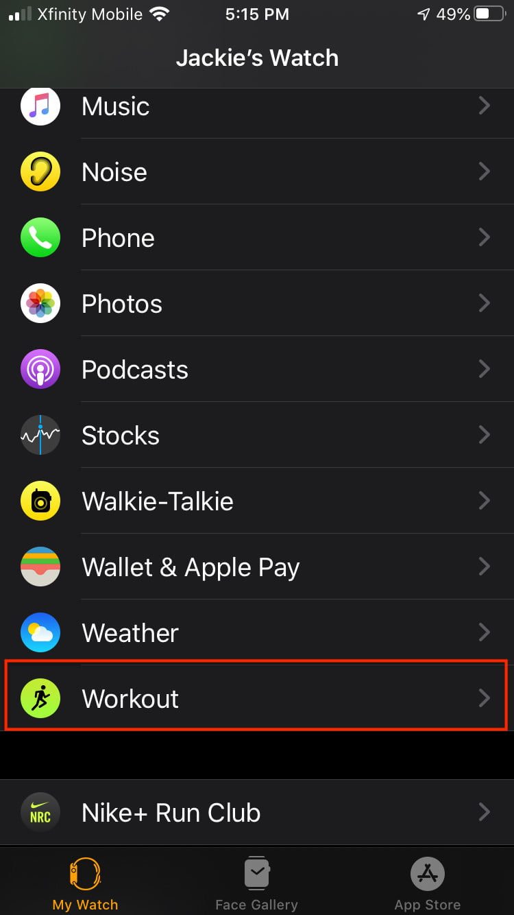 En ocasiones, la aplicación activa un ejercicio automáticamente. Cuando el Apple Watch detecta el comienzo de un entrenamiento es posible que recibas una alerta que te pregunte si deseas que comience a registrarlo. Posteriormente puedes elegir el tipo de entrenamiento e iniciar una sesión. Si olvidas detener el seguimiento al final del entrenamiento el reloj lo detectará y lo pausa automáticamente. Si te detienes para atarte los zapatos o recoger el periódico, asegúrate de que la aplicación no se pause automáticamente y si lo hace, simplemente pulsa para reanudarla. Con los entrenamientos que hagas más adelante, la aplicación predeterminada es la que usaste la última vez.