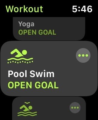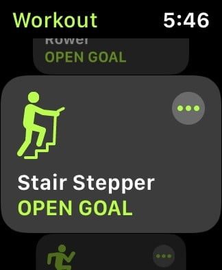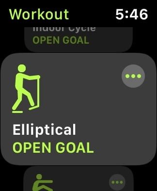 - Toca el icono Más (tres puntos) a la derecha del tipo de entrenamiento para establecer el objetivo basado en Calorías, Distancia, Tiempo o Libre.