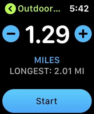 La aplicación Entrenos incluida del Apple Watch rastrea sesiones de entrenamiento específicas de una variada gama de deportes como correr, caminar, nadar, elíptica y demás. El dispositivo registra estadísticas en tiempo real para el tiempo transcurrido, la distancia recorrida, el ritmo, la frecuencia cardíaca, la elevación y calorías a través del procesador de doble núcleo, el sensor cardíaco óptico, el acelerómetro y el giroscopio del reloj. Los corredores pueden establecer un ritmo en el que el reloj utilice la retroalimentación háptica vibrar en la muñeca si te mueves demasiado rápido o demasiado lento.