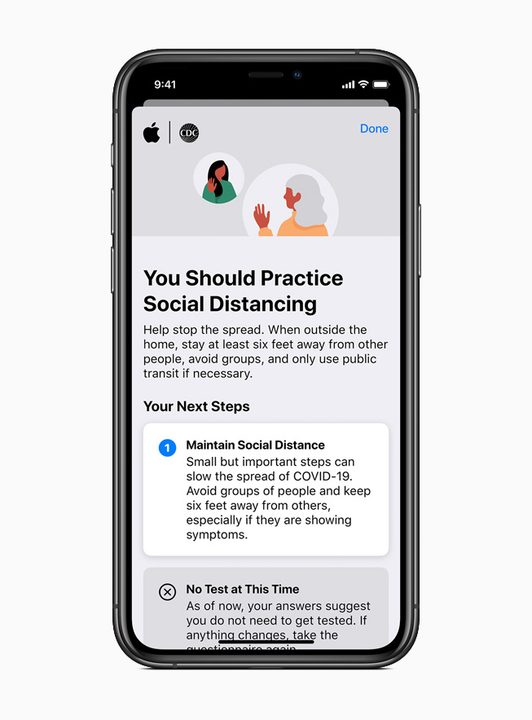 Además los clientes en los Estados Unidos también pueden preguntarle a Siri, «¿Cómo sé si tengo coronavirus?» para acceder a orientación y recursos de los CDC y una colección curada de aplicaciones de telesalud disponibles en la App Store.