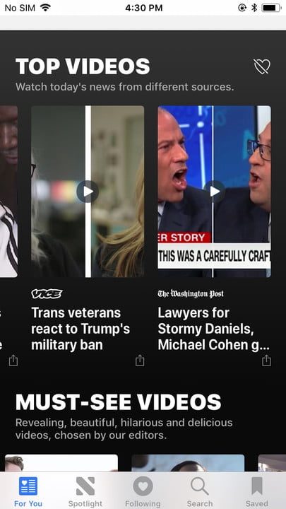 La actualización de la aplicación News ahora incluye una sección de videos seleccionados que se encuentra en la categoría “Para usted”.